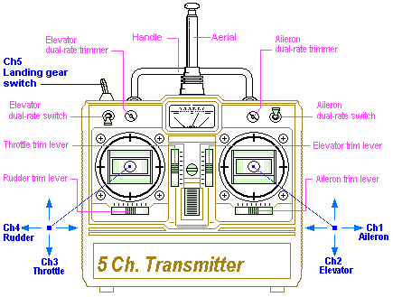 Basically the R/C equipment consists of a Transmitter operated by the pilot