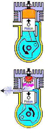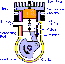 When the piston reaches the top, the glow plug ignites forcing the piston down
