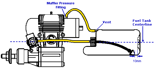 be at the same level as the needle valve or no lower than 1cm, (3/8in) to insure