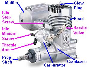 Glow engines may have plain bushed supported crankshaft or ball bearings.